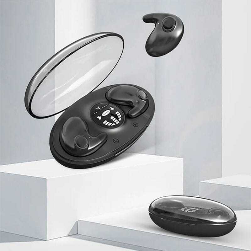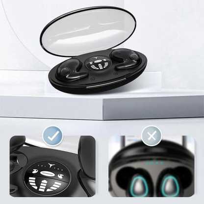 Very mini and invisible earbuds body design, if you like to sleep with earbuds and don't like the foreign body sensation in your ears when sleeping on your side, then these sleep earplugs are the best for you. Sleep on your side without squeezing your ears, and the U-shaped rubber skin-friendly ear caps make the earphones fit your ears all night.